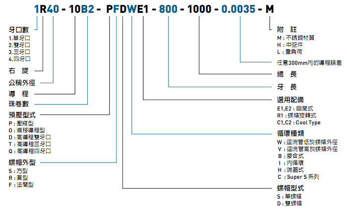 1、公稱外徑 | 6、精度(導程誤差,幾何公差) |