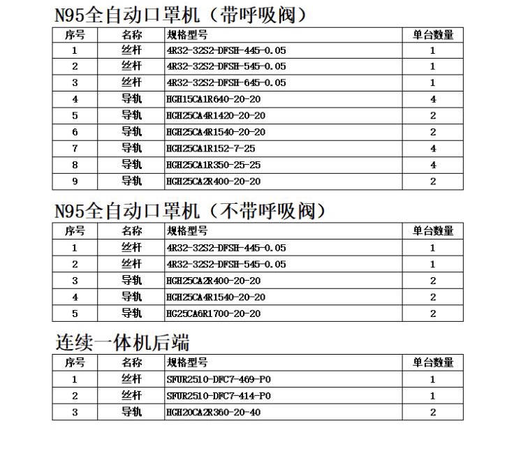 文章標題:N95全自動口罩機上銀導軌絲桿型號生產(chǎn)廠家