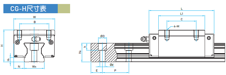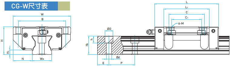 上銀CG直線導(dǎo)軌參數(shù)表: