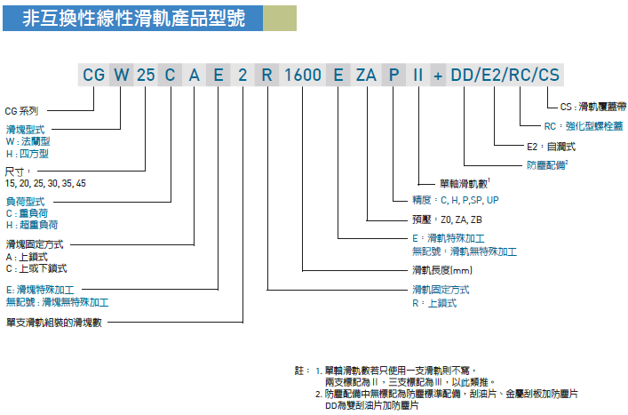 CG系列滑軌型號(hào)含義: