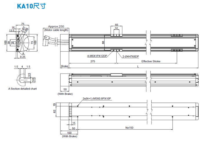 特性: 1、安裝與維護容易 2、低價格 3、高剛性 4、高重現精度 5、內置AC伺服馬達 6、客制化行程 |