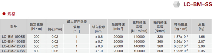 為獲得高轉速而專門設計, 因此實現了最大轉速20000min-1。高速旋轉時, 可確保穩定的動力傳遞。